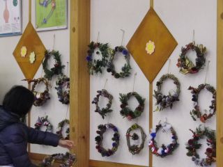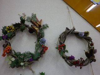 木の実や葉を組み合わせてオリジナルリースを作ろう。