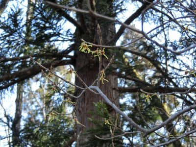 春一番に開花する、錦糸卵のようなマルバマンサクの花が観察できました。