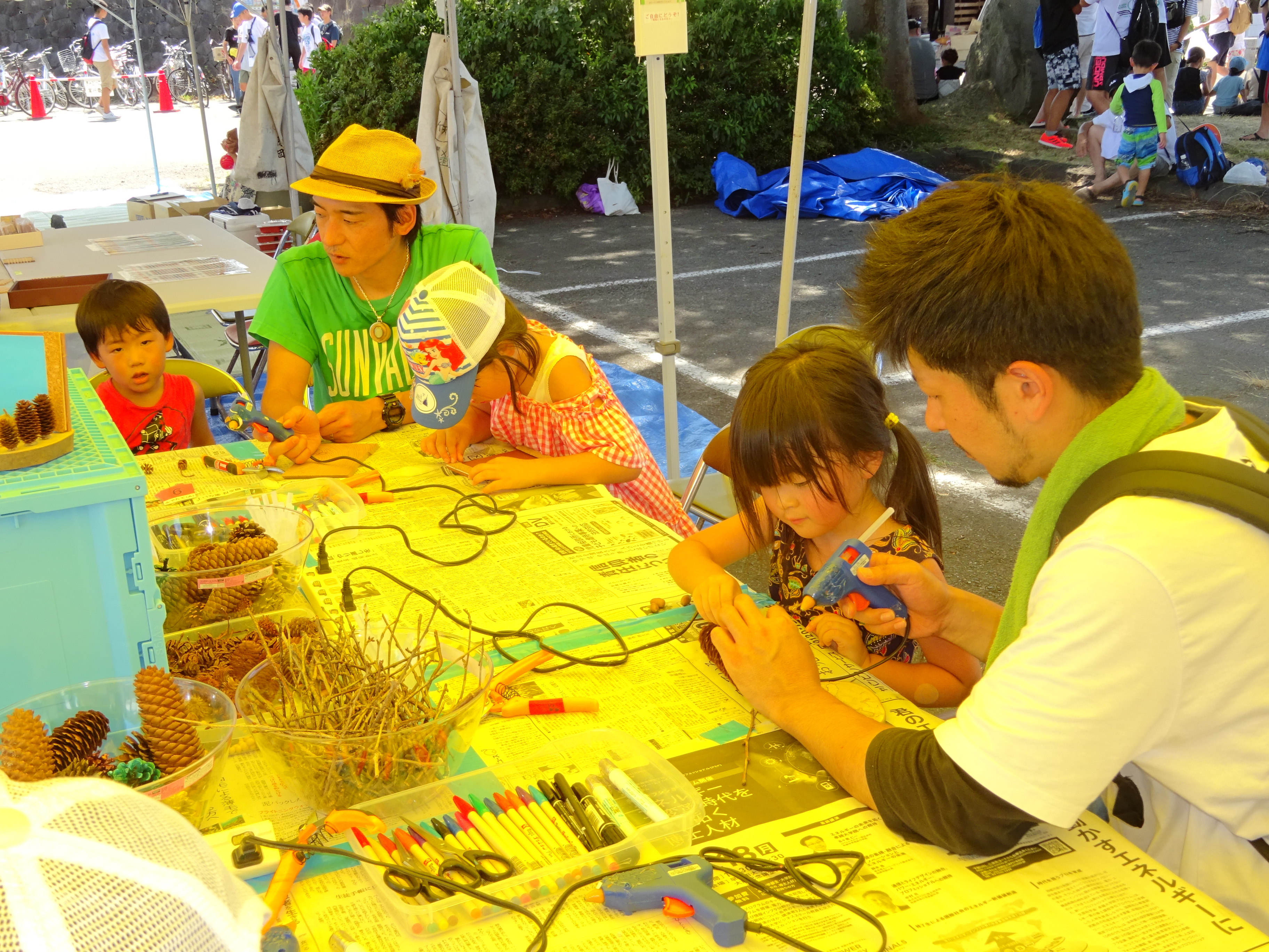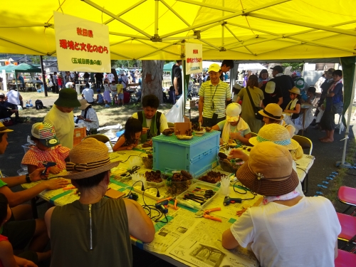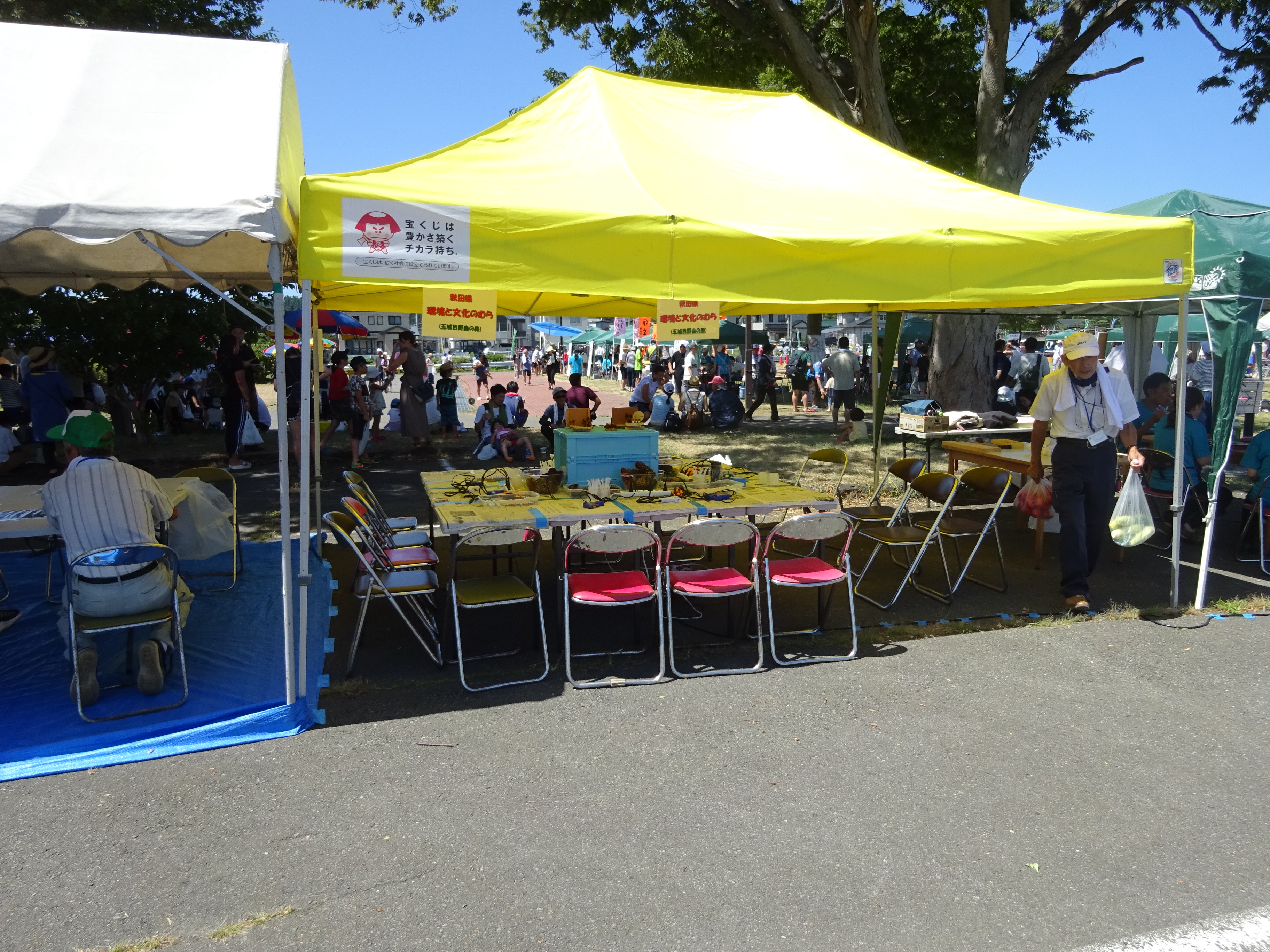 五城目町のきゃどっこ祭りが8/15に雀館公園で行われ、木材・木の実等を使った木工作品の作成指導を行いました。子供たち限定でしたが、里帰りのお客様が多数参加していただきました。