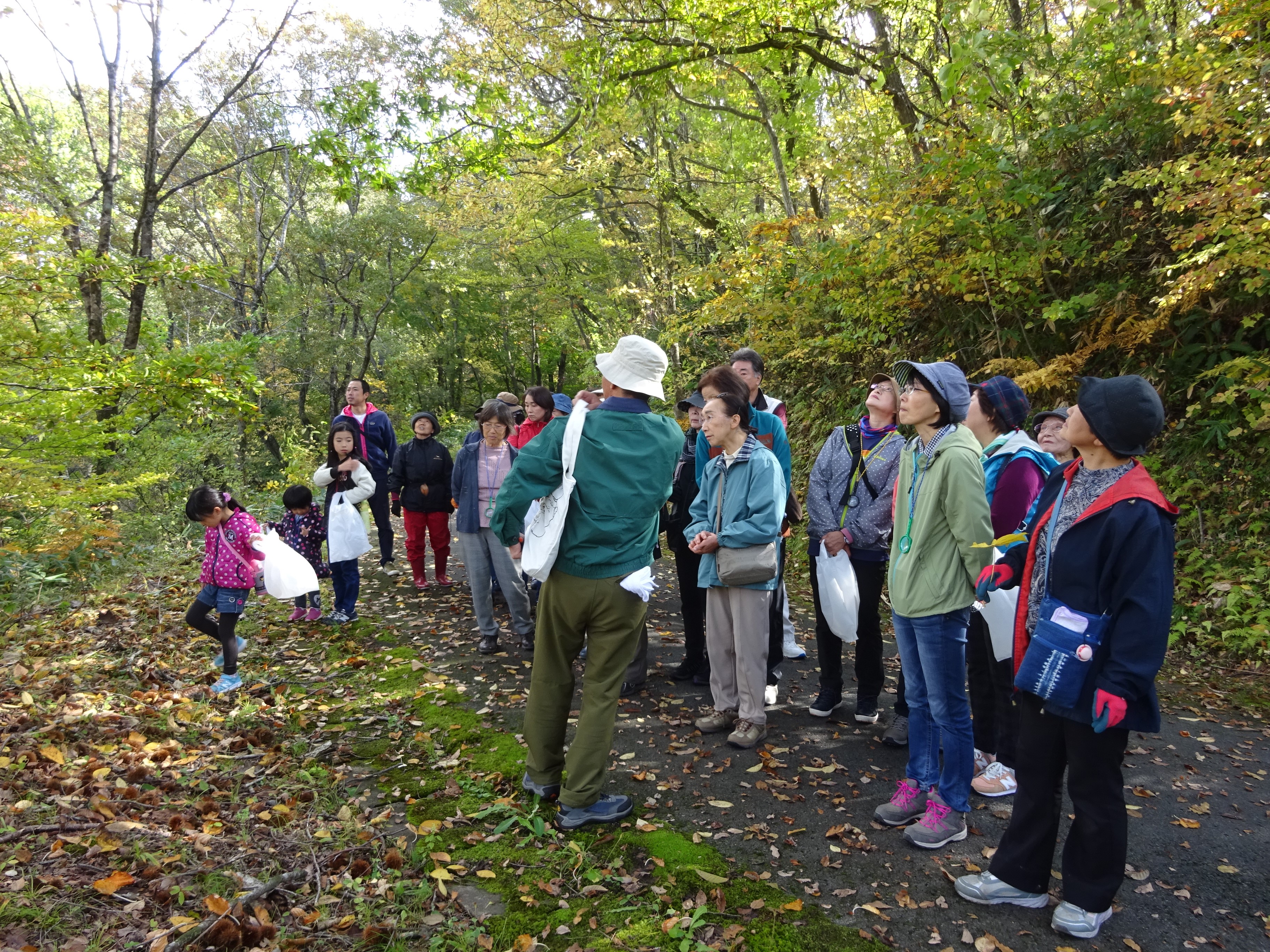 今回のテーマは「秋の森をゆっくり歩いてキノコ汁で温まろう」クマの件もありキャンセルの方もいましたが26名の方に参加していただき、紅葉とキノコ汁を楽しんでいただきました。天候にも恵まれ自然と触れ合い紅葉や葉っぱの特徴、葉っぱの香りなど今まできずかなかった体験ができ来年も参加したいとか、春の里山散歩に参加したいなどの意見をいただき私どもも大変うれしく思っております。