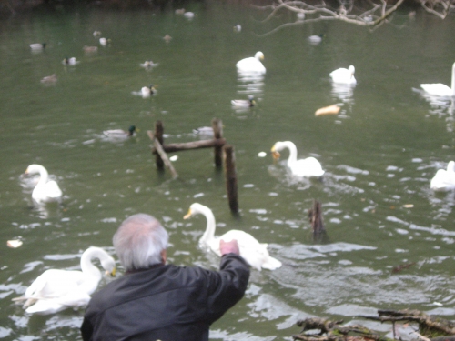 毎朝9時頃より白鳥にエサやりをしている様子を見ることが出来ます。散策ついでにぜひおいでください。