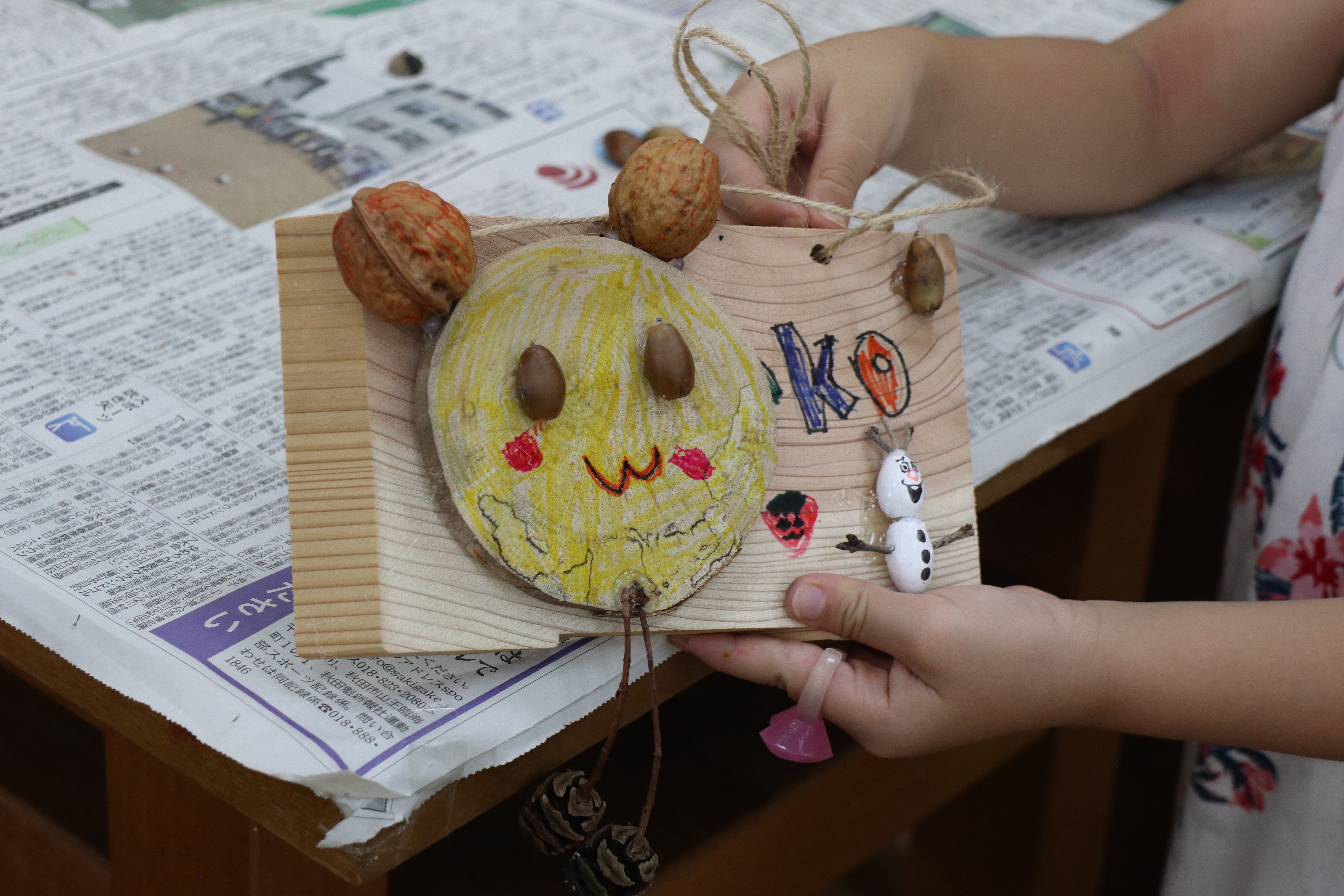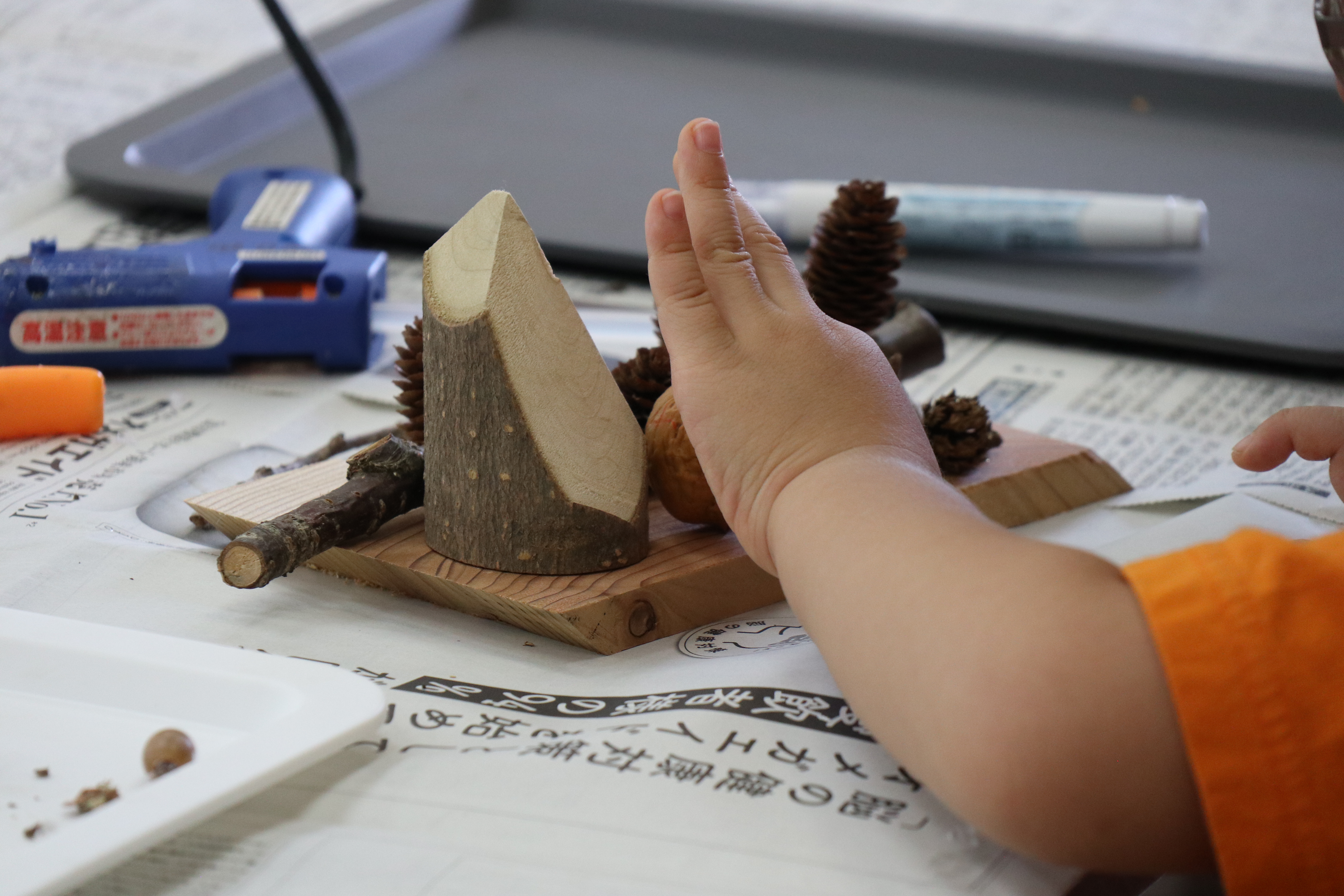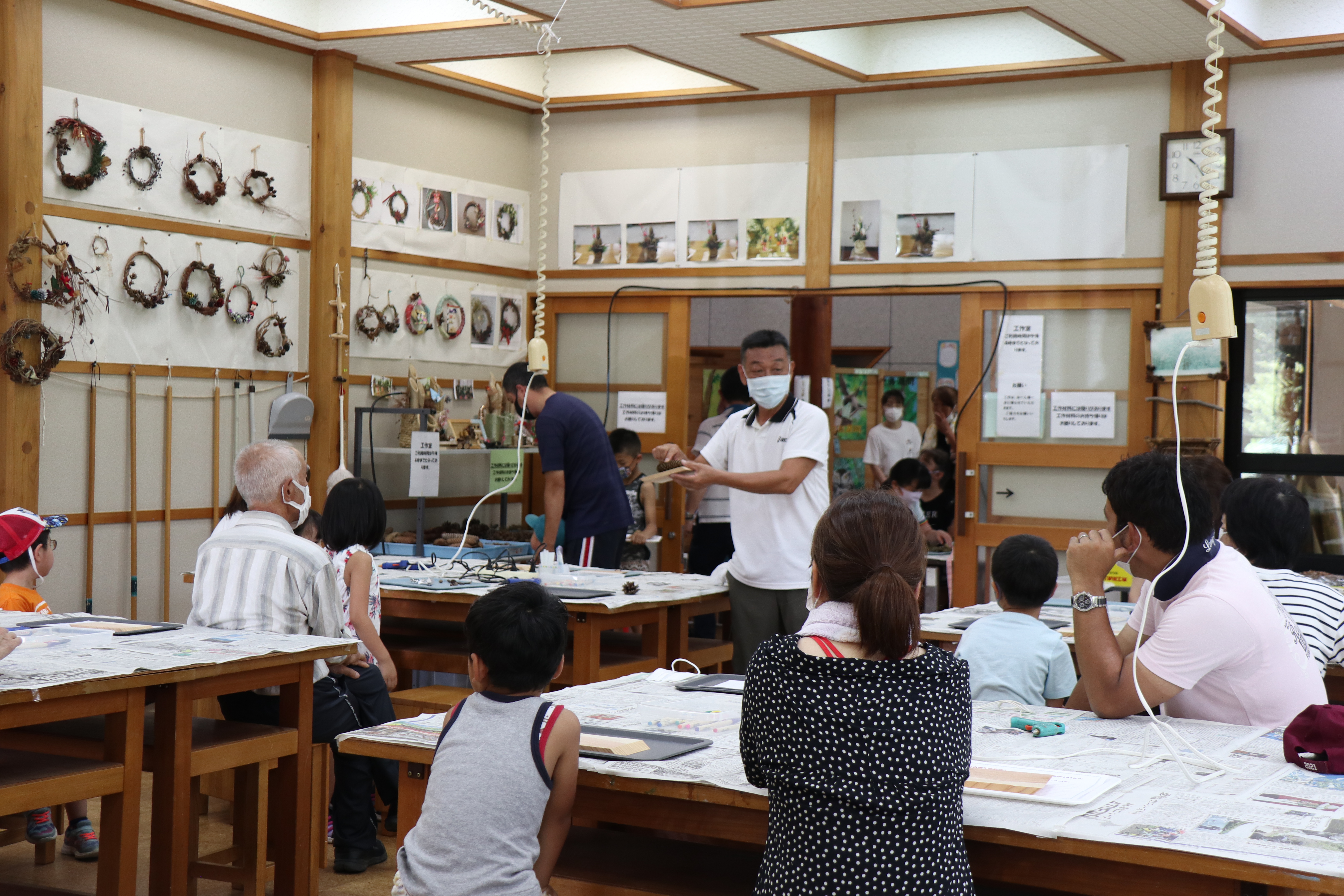 8月8日(日)「夏休み自然工作教室」を開催しました。まず始めに、工作時の注意点などを確認し、各自、材料を選び、思い思いの作品を制作しました。自由研究で学校に持って行きたいお友達は、頑張ってお手伝いなしで作っていました。