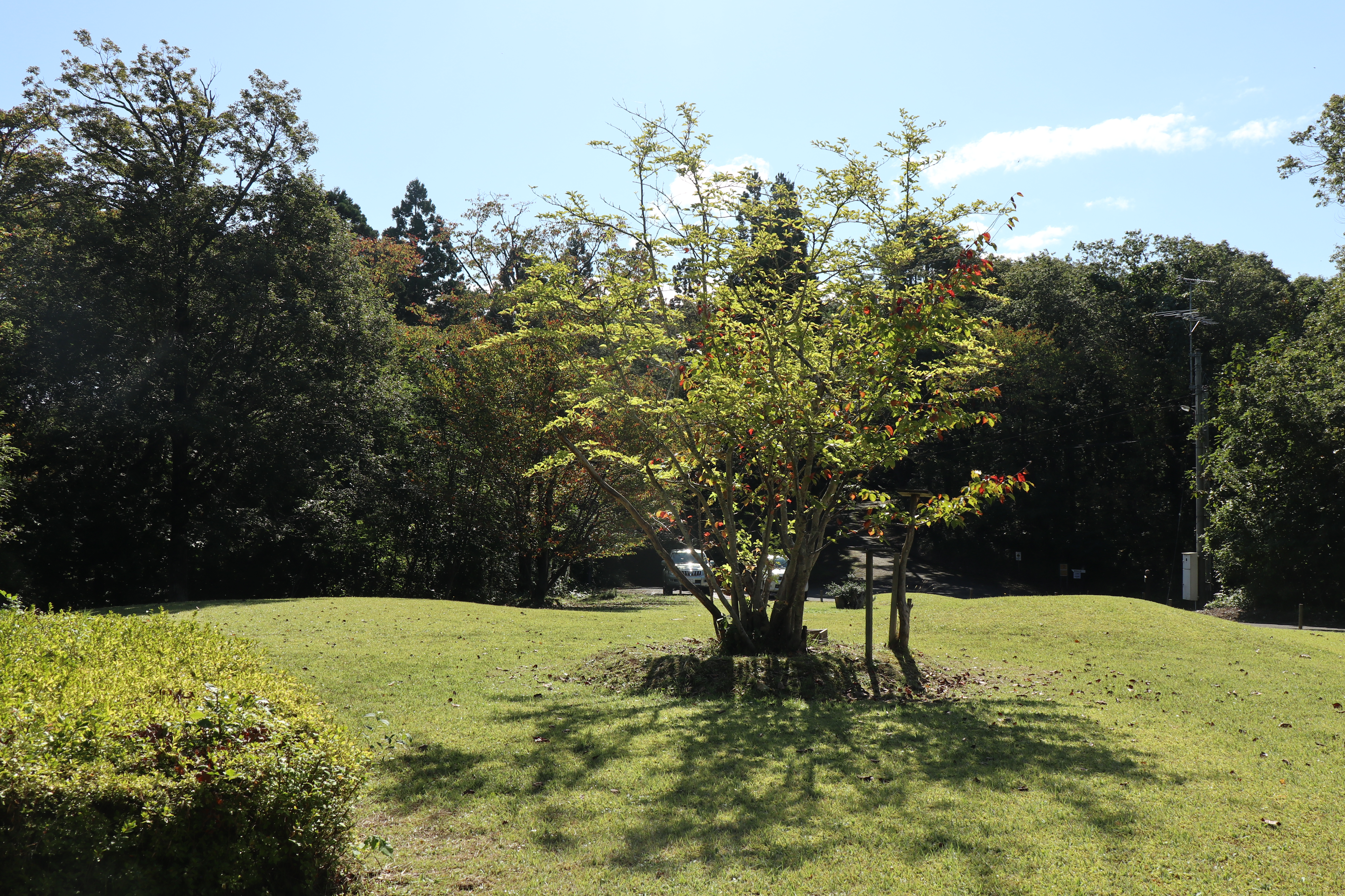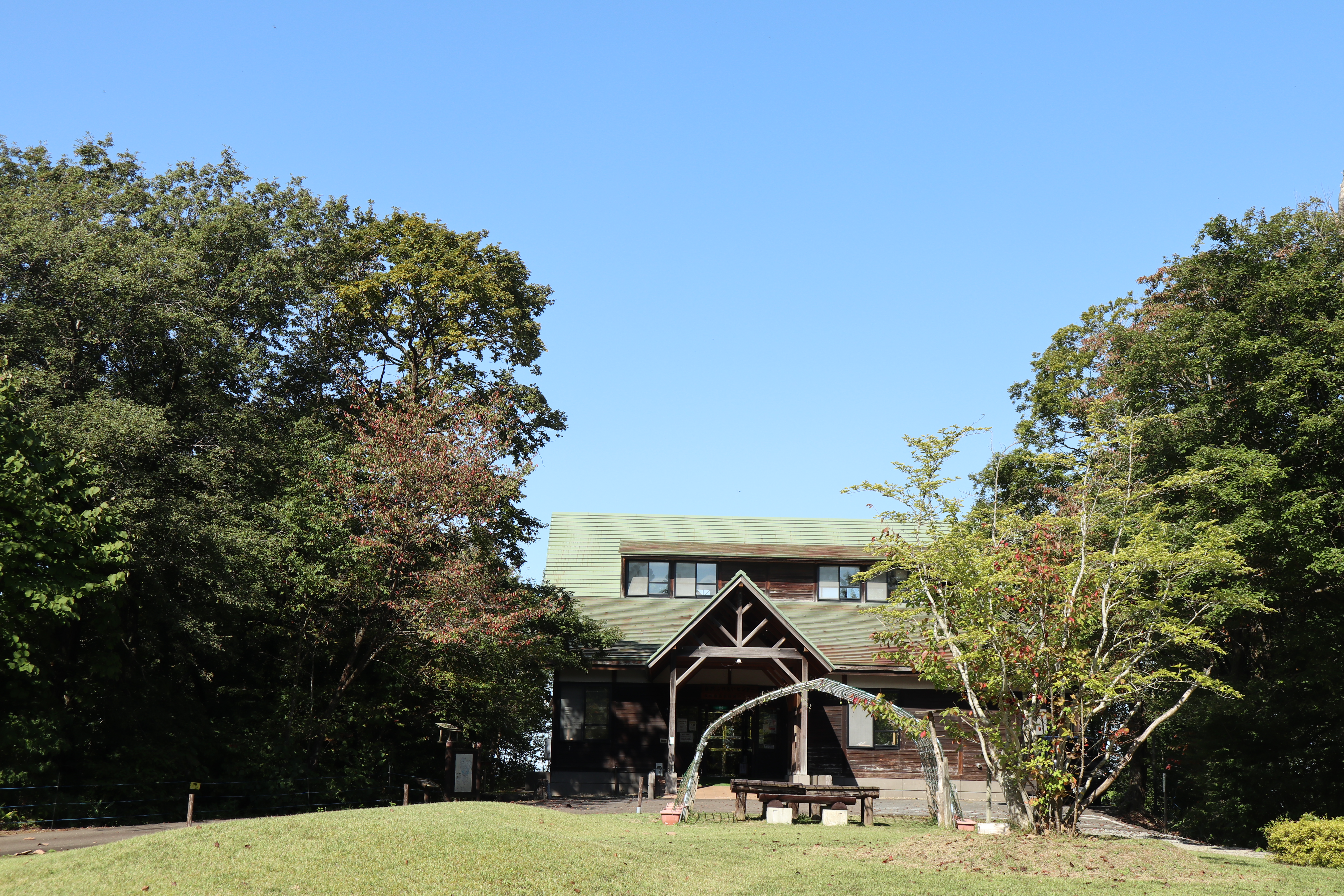 「環境と文化のむら」も少しずつ秋の色になってきました。愛鳥広場には、時々ソロキャンプの方がいらっしゃいます。受付は「ふれあいセンター」で行っております。愛鳥山荘ではWiFiが使えます。散策やワーケーションに、「環境と文化のむら」を是非ご利用ください。